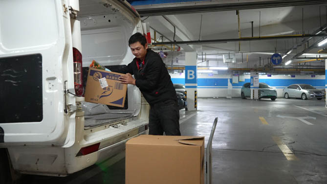 苏州的十月,濛濛细雨,这样的天气,也挡不住王震送货的路。在雨中,王震正开着他的东风御风穿梭在苏州市内,在一个小区卸了货,又转头奔向另外一个客户的家。车厢里,大大小小,长长短短的各种板材,王震熟练的打开车后门,从车厢里拖出各种板材,小伙动作伶俐有劲,丝毫没有卡顿