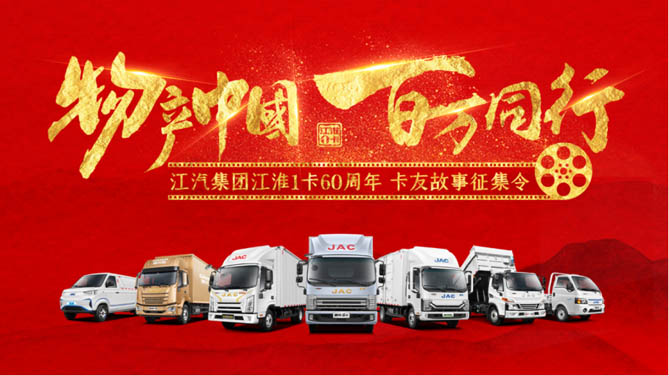 2024年,是江汽集团建厂60周年。60年来,从无到有,从小到大,从单一到综合、从走遍全中国到享誉全世界,江汽集团从未停止过奋斗的脚步。60不止,奋勇向上;江淮1卡,与你同行。借此60周年之际,秉承“关心车更关心人”的品牌理念,江汽集团旗下江淮1卡策划开展“物
