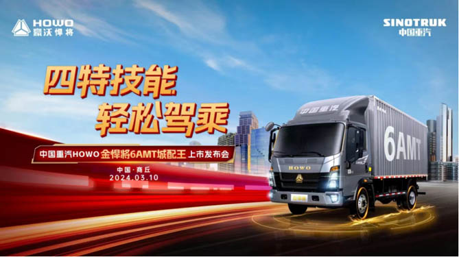 2024年3月10日,以“四特技能 轻松驾乘”为主题的中国重汽HOWO金悍将6AMT城配王上市发布会于河南商丘隆重举行。驭风领势,城配王者作为中国重汽在高效城配运输市场的又一力作,HOWO金悍将始终坚持“客户收益最大化”的理念,持续提供定制化的物流装备解决方案