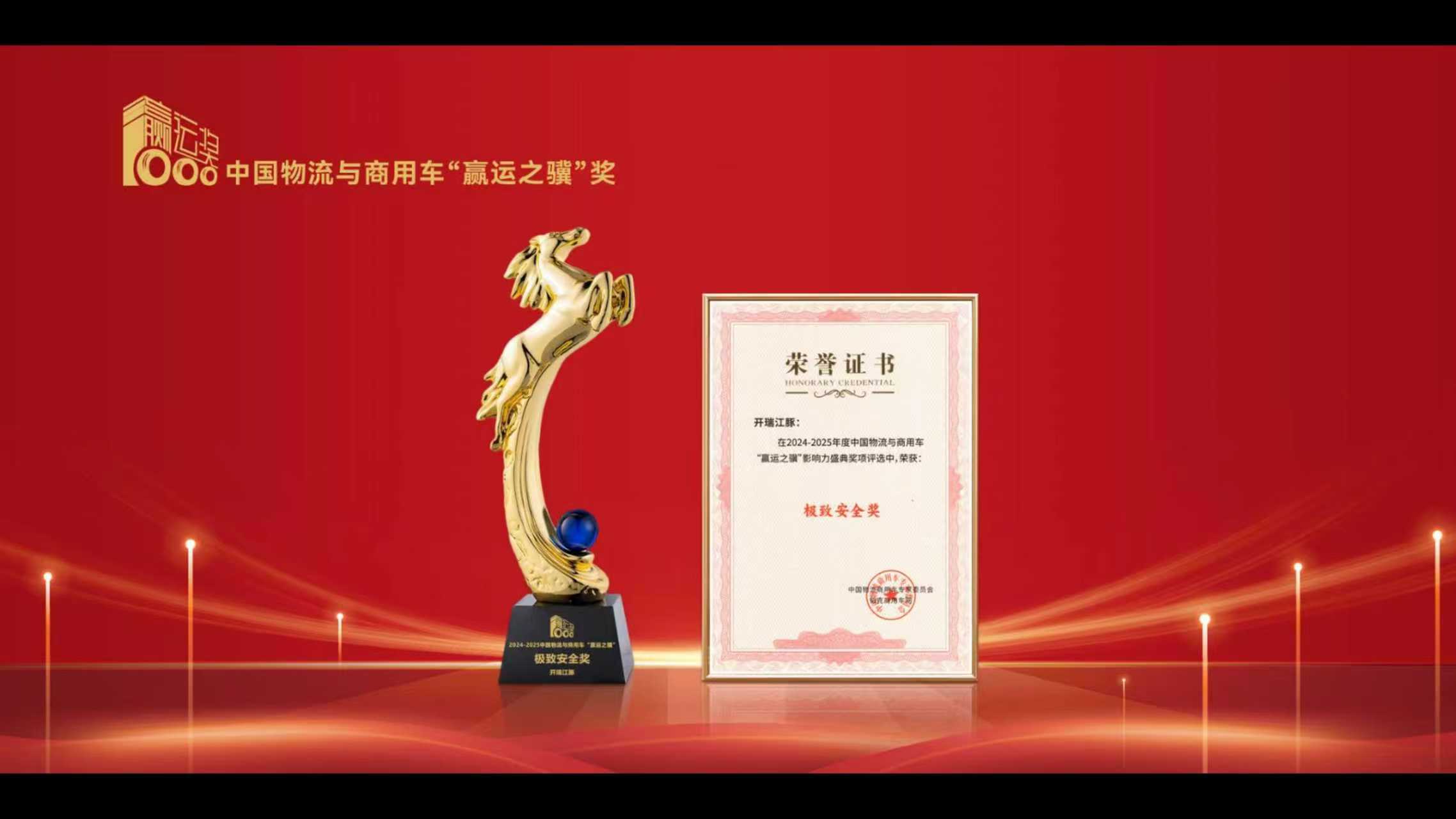 开瑞江豚获颁赢运之骥极致安全奖