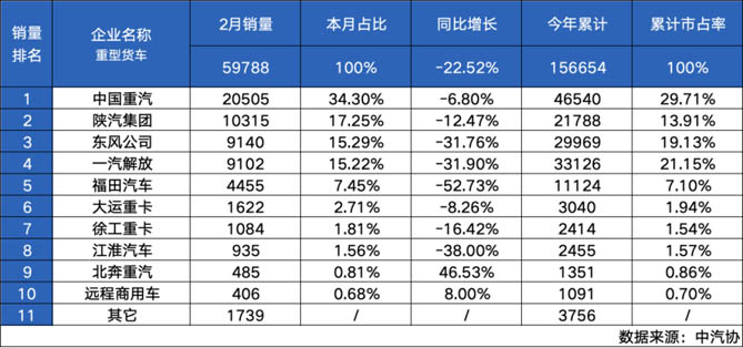 中国重汽销量遥遥领先 2月销量突破2.05万辆再夺“双冠军”