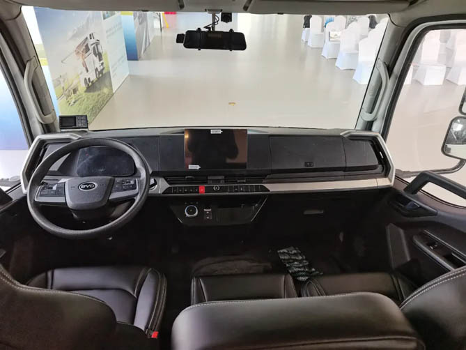 驾驶室配置液晶仪表、多功能方向盘,具备一键启动功能。同时配备10.1寸PAD,媒体播放、语音操控更舒适更便捷。并且,驾驶室还配备了全球领先的BSC液压制动系统,无空压机打气声音,夜间噪音更小,带来舒适的休息环境。