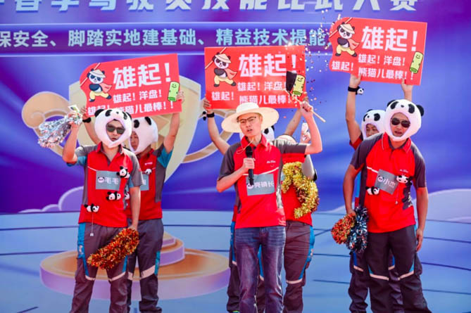 除了振奋人心的比赛,活动还设有“打擂”环节。舞台上,“海盗”装束亮相的表演引人捧腹,“熊猫”装扮的舞蹈萌态可掬,“踩高跷”拉票则将气氛推向高潮。选手们各展才华,现场气氛热烈欢快,展现物流人的多才多艺与活力。
