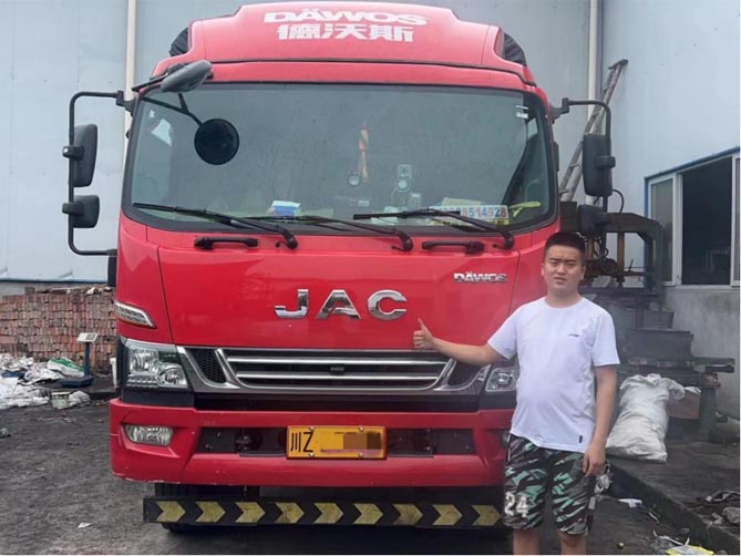 除了对车、对行业比较了解外,姜老板的驾驶技术也很不错。从运输路线来看,眉山市内以及眉山往返宜宾、攀枝花都在他的运输范围,每天的运输里程少则200公里,多则500多公里,经常还需要下到田间、果园,各种复杂、狭窄的路况都会遇到。正因为路况复杂、行驶里程多,所以姜老板练就了一身过硬的驾驶本领。他说:“有些山路比较窄,一辆车跑倒是没事,两辆车就没办法会车了,一开始开不好,跑多了也就适应了。”