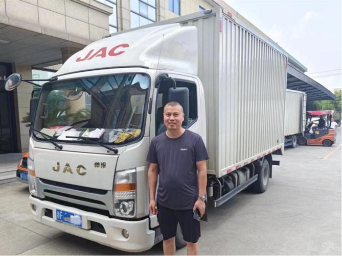 一开始,运输需求量不是很大,俞老板也买过不同品牌的车,但有些车的“脾气”并不适合饮料运输,比如动力不够,装满饮料后跑起来吃力;比如稳定性差点意思,半路出故障,耽误送货。随着业务的不断拓展,俞老板也渐渐将目光锁定在了江淮1卡上。“我有一辆老骏铃,开了7~8年了,当时还是在我们桐乡市的江淮4S店里买的,现在的状态依旧很好。”这台老骏铃陪伴俞老板很多年,见证着他的生意一步步做大、事业一步步做强。