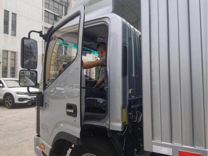 有亲戚这位老师傅把关,余老板试驾时对自己的用车需求也清晰很多。他自己是第一次接触卡车,之前没开过,4米2的蓝牌轻卡开起来还是感觉有点大,拐弯不太方便,自己的运输量不是特别大,有个3米多的货厢就完全够用。最后,余老板就选了这辆3米7货厢的帅铃S3小卡。