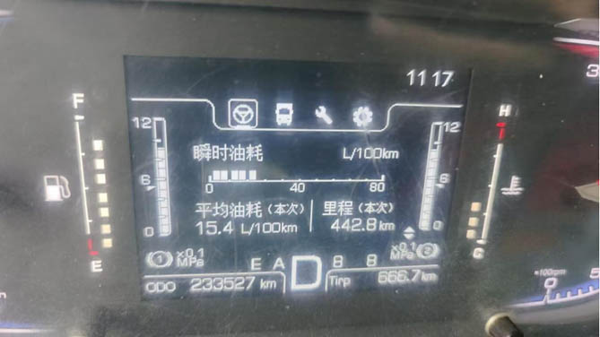 最让李师傅满意的是新车的油耗。虽然马力提升了,但油耗却还是很低。他有个老习惯,就是每次出发前都会把仪表清零来看油耗,这次从盐城到广州运送11吨鲜货,期间两段路程显示百公里油耗仅15.1升、15.4升,比别人的车要省2-3个油。李师傅算了一笔账:以年均15万公里、油价7.5元/升计算,一年光油费就能省下3万元以上,这可让同行们羡慕坏了。