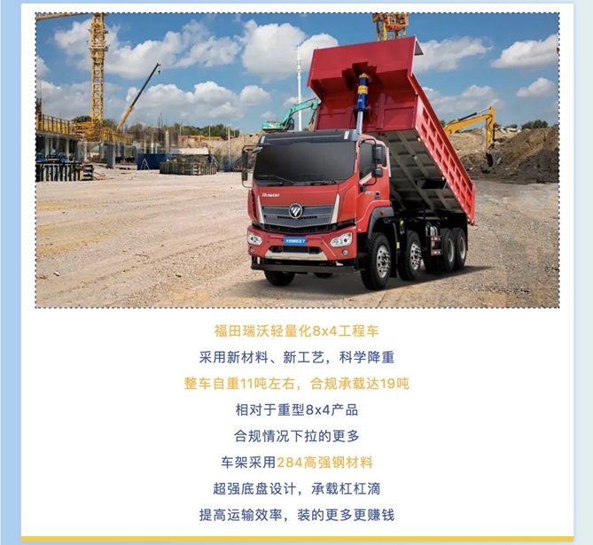 建材运输高效创富秘笈竟然是——福田瑞沃轻量化8x4工程车!