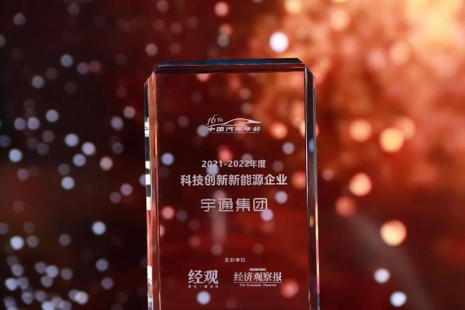 2022年12月23日,由《经济观察报》主办的“韧性筑底 蓄力向新 2022第十六届中国汽车年会”上,宇通集团荣获“2022年度科技创新新能源企业奖”。