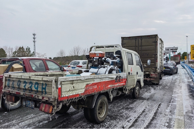 因大雪缘故,高速管理部门将高速公路临时进行封闭管制,救援团队只能冒着严寒,就地等候高速路的开通,确保能在第一时间赶到用户身边。上午8时45分,高速路终于正常通行,但刚刚通行,前方又出现事故,造成严重堵车。上午10点50分,救援团队终于与用户会合。