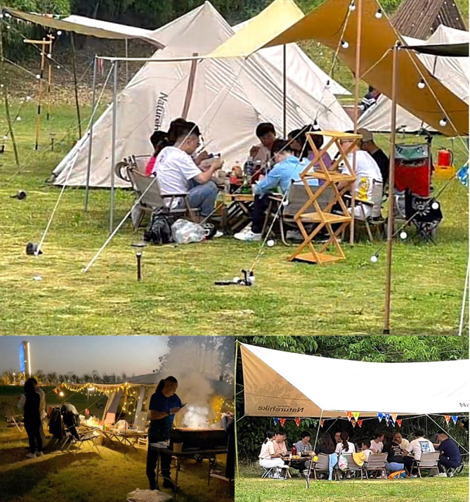温暖的阳光轻柔的洒落在身边,微风吹过,影子在草地上轻舞,孩子们早已打成一片,争抢着脚下的皮球,玩得不亦乐乎,发出阵阵欢笑声。这里有已经退休的中老年人,有喜欢户外露营生活的年轻人,有以车为家的房车旅居爱好者,还有许多和徐先生一样带着孩子出来踏青的一家人。