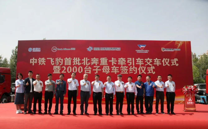 北奔重汽与中铁飞豹快线(天津)国际物流有限公司签订了2000台子母车采购协议,与中铁飞豹所托(珠海)智慧物流科技有限公司签订战略合作协议