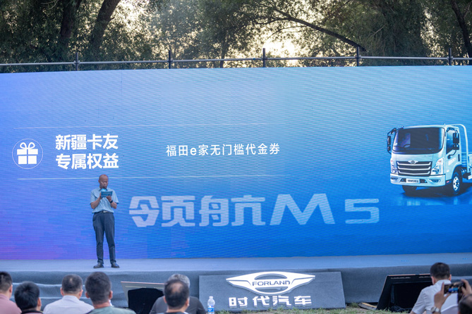 随后,福田汽车集团时代事业部新疆大区总监岳鹏程公布福田领航M5新品新疆区域购车专属福利政策。时代汽车释放产品与服务势能,全力携手新疆用户燃情创富。