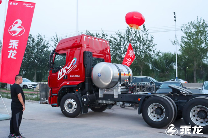 凭借超轻自重、超低气耗,乘龙H5超轻版LNG牵引车得到了当地用户的广泛认可。现场还发布了专属购车政策,优惠的价格直击用户心底,掀起订车热潮,共订购58台。