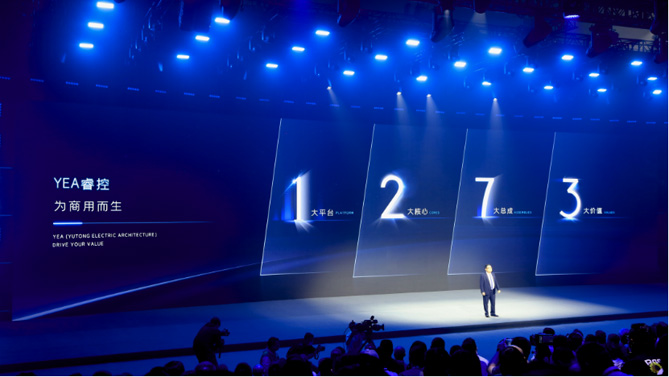 全新的睿控E平台历经十年不断迭代升级,集新一代高安全超能电池、多合一碳化硅动力域控制器、新一代高效轻量化集成式电驱桥、商用车多源超低温热泵、高效补能技术、智能网联商用车驾驶舱、PB级存储亿万级高算力智能网联云平台等七大总成于一体,实现了八大行业首创,将新能源商用车产业水平提高到了一个新的台阶。