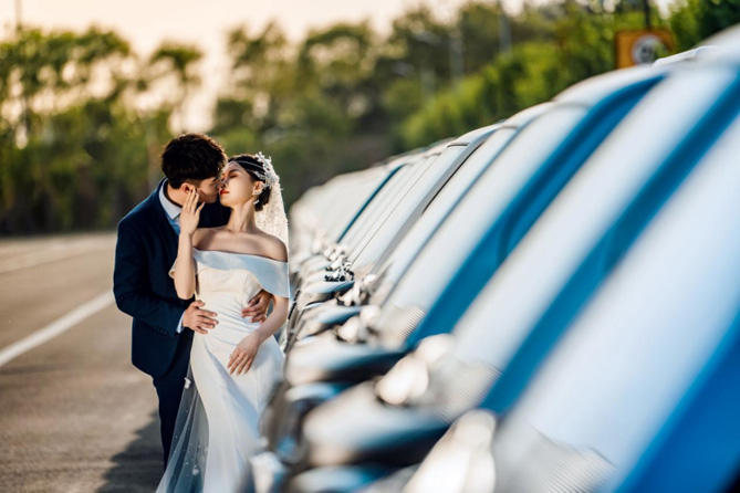 在充满氛围感的构图语言中,它犹如一条纽带将热恋中的新人与周围的景致巧妙连接,借助光影交织,讲述一个个动人的爱情故事。
