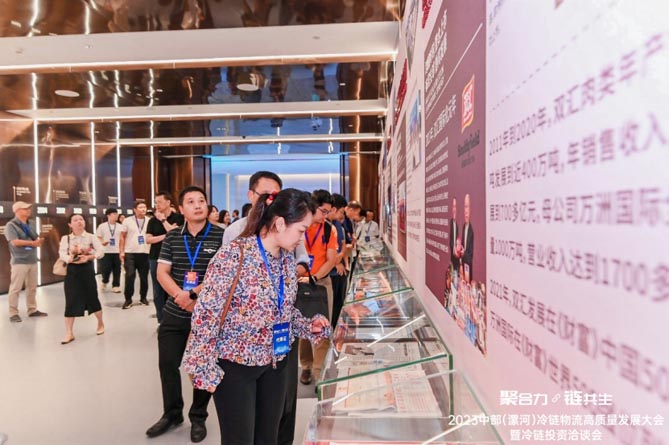会议期间,与会嘉宾一同参观中原食品实验室暨河南省食品科创园、双汇调度运营中心及生产冷链基地、漯河港,实地考察冷链生产、运输、仓储等全流程。