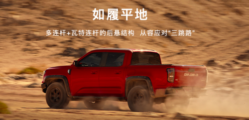 其次,越野时必然会遇到较为复杂的路况,特别是在一些坑洼路面,或者砂石地,不仅考验驾驶技术,还考验车辆本身的素养。敢探者拥有高操控性,它是行业内首款使用瓦特连杆后悬的皮卡,操控和舒适性得到了大幅优化,还提升高速过弯时的稳定性。只有正确把控方向,才能让我们安全地抵达想去地方。