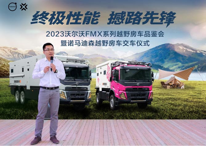 近日,由河南德野专用车辆股份有限公司基于沃尔沃FMX底盘车打造的诺马迪森越野房车正式交到客户手中。交付仪式在神都洛阳洛水昌谷风景区举行,沃尔沃卡车中国销售副总裁郭涛先生、河南德野专用车辆股份有限公司董事长赵东兵先生出席仪式并签署战略合同。来自全国的近百位特邀嘉宾见证了这一重要时刻。