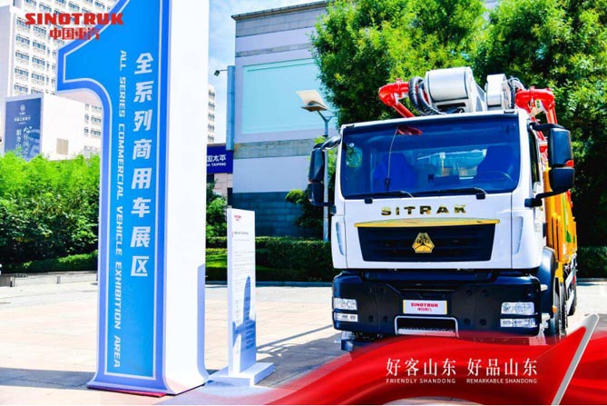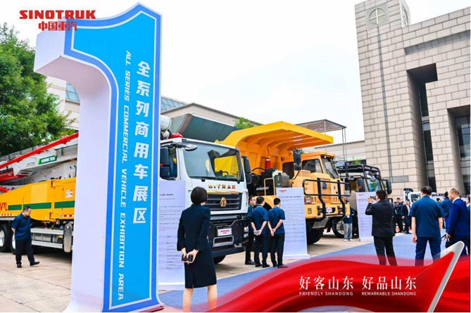 在大会现场的全系列商用车展区,包括黄河120矿卡、汕德卡G7S显控一体化泵车、统帅AT载货车、HOWO金悍将载货车、HOWO金悍将载货车、汕德卡休旅车U75PLUS 大七座SUV 等产品在内,涵盖轻型车、专用车以及轻卡的共9台展车闪耀登场,带来一场科技盛宴,与会者共同探寻商用车的未来发展方向。