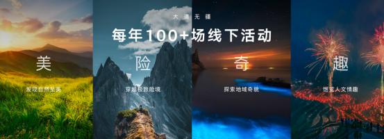 大道学院将邀请各个领域的资深专业玩家,为用户带来丰富、生动的教学视频。同时还将不定期举行线下交流活动,让大道用户与他们近距离互动。大道无疆作为用户活动板块,每年将与用户一起组织超过100场的线下活动,涵盖越野,钓鱼,露营等多种类别。通过“美、险、奇、趣”四大主题路线,让用户尽情体验大自然的精彩。