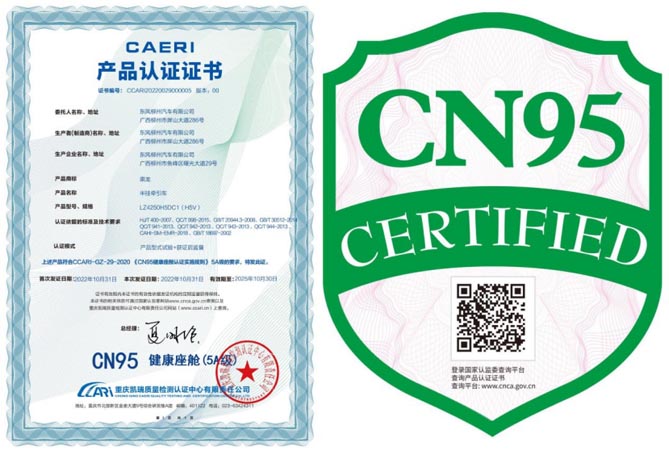 “5A级健康座舱”是由国内权威机构—中国汽研凯瑞认证,完成全部五项健康座舱认证,并全部达到A等级才会授予“CN95健康座舱5A级”证书及相应的认证标志。这一荣誉不仅是对乘龙产品健康性能的认可,更是对乘龙在守护卡友健康方面所付出的不懈努力的肯定。
