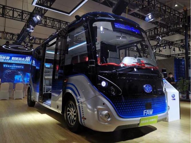 参展的还有一汽解放L4级自动驾驶巴士。整车采用全承载车身,设有7个豪华乘客座椅,空调常开下续航里程150公里,最高车速设置为69km/h。无人驾驶巴士配备了人脸识别、体温检测、客流统计系统,装置了空气净化系统,及主被动安全设施。它的感知系统主要由雷达、摄像机、惯导天线组成,用来探测感知周边物体并收集数据。这款产品的应用场景非常广泛,可用于各厂区、园区内循环接驳,也可作为景区、校园游览观光车。