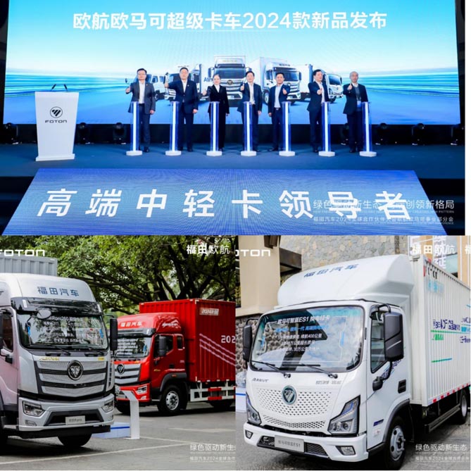 在刚刚过去的福田汽车2024年全球合作伙伴大会上,欧航欧马可一连发布多款2024年重磅产品,包括欧马可轻卡燃油车升级产品,全新平台的纯电、换电及全系混动产品,欧航中卡除了领先的自动挡产品外,更是展示了纯电、混动、氢燃料领先技术率先应用的产品。同时,欧航欧马可联合合作伙伴,构建完善新能源生态服务体系,推出“521”高端新能源专属服务承诺,让更多用户感受到高端品牌带来的美好体验。