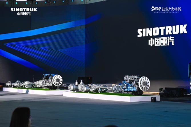此外,潍柴动力WP17T 840马力发动机、重汽自研第八代S-AMT集成式变速箱等多款动力总成以及动力链也集结亮相,也向现场观众揭示了高效背后的核心。搭载中国重汽S+高效科技的一辆辆新车承载着“2024让客户更赚钱”的目标驶向未来,全系出击,全场景覆盖,与全球合作伙伴以及广大卡友共赢未来。