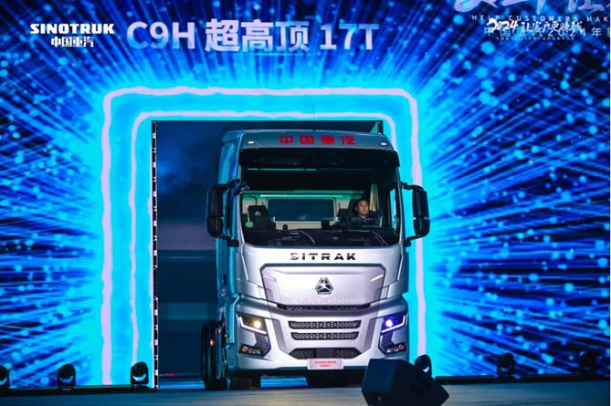 作为高端干线力作,汕德卡全新C9H超高顶 WP17T 840马力牵引车的发布震撼全场。车辆集德系品质、中国制造、世界顶级动力等标签于一身,搭载中国重汽专属定制潍柴WP17T 840马力发动机,刷新行业马力极值,澎湃动力轻松征服复杂路况;超高热效率成就节油大马力,打造干线开挂猛兽;车辆的前脸焕新和内饰升级也十分令人惊喜,全新升级智能驾驶辅助系统,带来极智用车体验,48分贝极致静谧享受,打造国内最高端智能卡车。