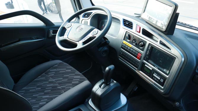 除此之外,欧航智蓝纯电洗扫车还配置了多种智能系统,例如后视摄像头,可以帮助驾驶员在作业时随时观察周围情况。通过智能监控终端,人员可以在车内随时查看作业效果。特别值得一提的是,欧航智蓝纯电洗扫车根据洗扫车工作特点,设计了低速巡航功能,作业时可将车辆时速设定在5—30km/h,保障作业安全的同时也能降低驾驶员的劳动强度。