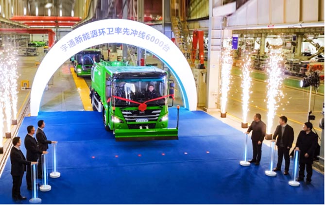 在作业场景,2023年,宇通新能源环卫保有量连续三年稳居行业第一,并在行业内率先完成第6000辆新能源环卫车下线,实现里程碑式突破;宇通矿卡在全国多个样板矿山实现无人驾驶批量运营,远销至泰国、智利,助力各国绿色矿山建设迈上新台阶;宇通重装持续扩充电动旋挖钻机产品型谱,销往全国20多个省市,且在行业内率先推出首款增程式电动强夯机,用电动科技践行绿色发展理念……2023年,宇通新能源商用车一步一个脚印,开创了多赛道齐头并进、全域突破的全新发展局面。