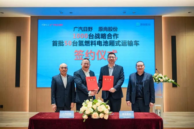 广汽日野与原尚股份1000台战略合作首批50台氢燃料电池厢式运输车签约仪式