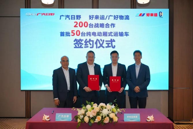 广汽日野与好来运物流200台战略合作首批50台纯电动厢式运输车签约仪式