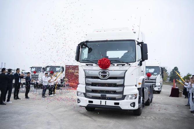1月8日,广汽日野与赣粤之新物流首批20台普货牵引车交车仪式在广州从化举行