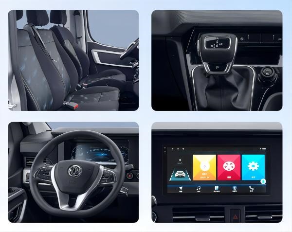 在智能化配置方面,东风御风V9+也统统拉满:12英寸液晶仪表+10.36英寸智慧中控屏的双屏搭配科技感十足;三幅式多功能方向盘,集定速巡航、蓝牙电话、语音控制等功能,操控便捷舒适。另整车环绕布置了多处储物空间,水、纸巾等必备物品随手可取,增添出行便利。