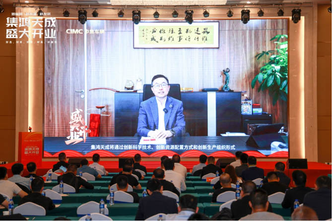 中集车辆CEO兼总裁李贵平通过视频向集鸿天成开业表示祝贺。他表示,广西集鸿天成是中集车辆和时代天成合作成立的商用车销售和服务企业,担当中集·陕汽“一个车企"新发展理念的探索者,借助三好发展在品牌、技术、研发、制造、营销等优势,以及时代天成的平台资源,集鸿天成将通过专业的营销和服务,不断推动中集·陕汽好牵挂产品组合的构建和快速迭代,致力于为广大客户提供“好选、好买、好用、好卖、好服务”的头挂列车。