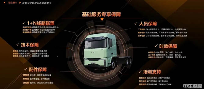 一个全生命周期的好的服务,能够让使用者感到放心。为解决用户的后顾之忧,联合重卡还为客户提供自保站支持、1+N线路联盟、人员保障、技术保障、时效保障、配件保障、培训支持等7大项服务政策,做到3小时必达、24h全天候售后服务、无条件外场救援、售前中后全面培训、提供高级技术顾问等,确保客户能够享受高品质的售后服务,实现高效运营。