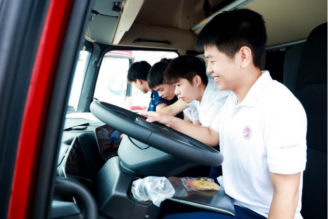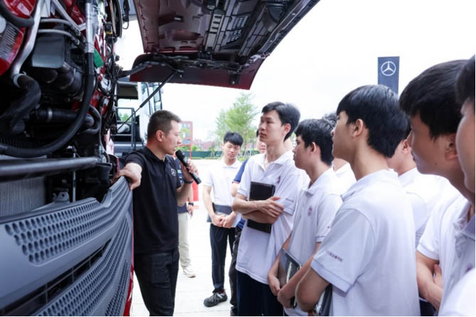 广州市交通技师学院学生近距离领略梅赛德斯-奔驰卡车的产品亮点和技术优势