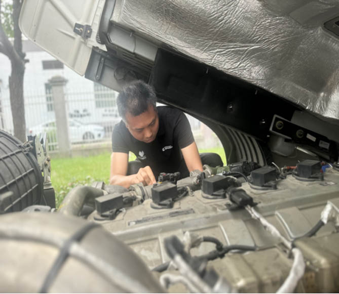 当然,在践行欧曼服务宗旨的过程中,还有更多服务站同样做得非常到位,可谓事事尽心竭力。在6月17日,某客户公司运输司机反馈车辆发动机有偶发性故障灯亮。接到客户的服务请求后,欧曼及福康上海市场部、上海鸿安锦翔服务站很快到达现场对车辆及燃气系统进行安全检查,在确定原因后,立刻对系统进行更新,在20分钟内就解决了问题!此后,欧曼服务站工作人员还为司机师傅讲解了气体机燃气系统工作原理,分享了很多驾驶操作节省燃气消耗的小妙招。对此,司机师傅表示感谢和支持,并赞道:“本来车好服务也好,这些小技巧更好,能让开车省很多燃气成本,运输效益肯定会越来越好!”