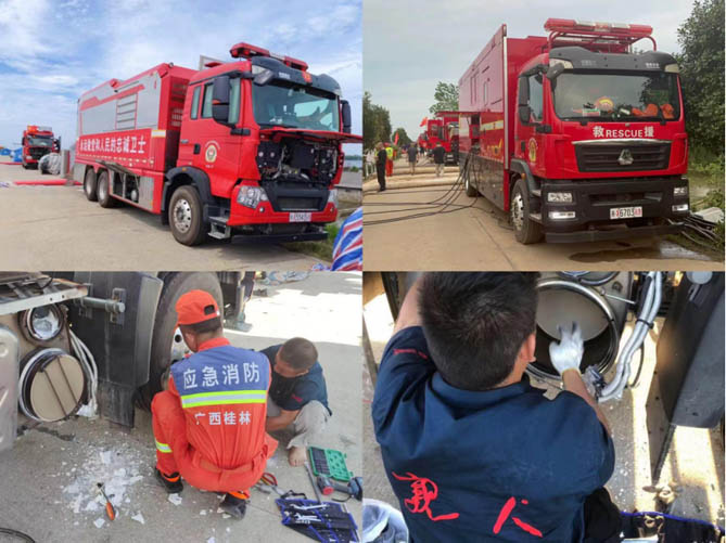 与此同时,中国重汽积极响应,“亲人服务”迅速抵达灾难救援的最前线。汛情紧急,为全力保障华容县团洲垸等区域抗洪救灾消防应急救援车辆的正常运行,自2024年7月19日至抗洪救灾全面结束期间,中国重汽紧急启动《亲人有爱,洞庭湖抗洪救灾服务保障》计划,对参与救援的消防应急车辆,提供无条件免费救援,并在抗洪大堤设立驻点服务保障小组,24小时保障救援车辆正常运行。此外,中国重汽还为现场救援人员免费提供饮用水、餐食、药品等应急物资。