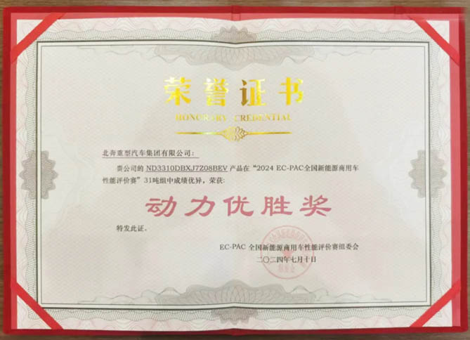 评价赛对所有参赛车辆的动力性、续驶里程等10项指标进行综合测评,充分验证行业各主机厂新能源商用车的最新技术应用成果。全国23家主流车企25款商用车车型参加评价赛,经过激烈角逐,北奔重汽“3162CK纯电动自卸车”荣获“动力优胜奖”,用实力诠释了动力强劲、品质卓越、市场认可的中国品牌力量。