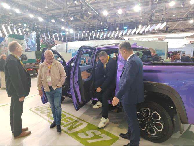 作为全球第二大汽车市场,豪华汽车的俱乐部,欧洲用户对车辆的品质有着更强的专业性和更高的追求,也有一些鉴别车辆品质的“妙计”。不少客户都会通过听车门关闭声来了解产品品质,一位德国本地的客户表示,搏胜皮卡车门关闭声音浑厚,和豪华车型有着相同的可靠品质,在展会期间,搏胜皮卡的豪华品质得到客户的反复验证。