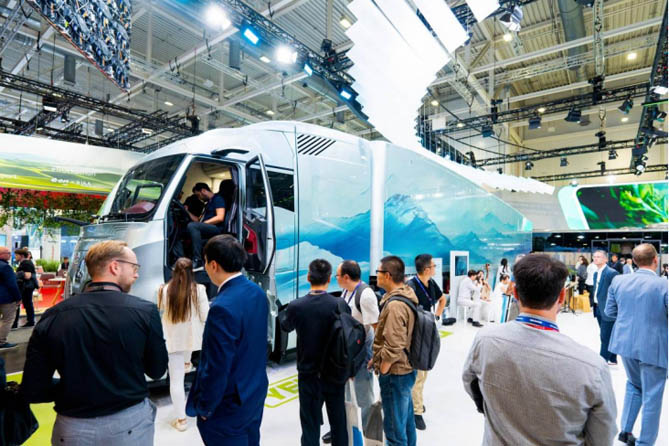 在万众期待中,中国重汽于2024德国汉诺威车展媒体开放日上,携其全新升级的黄河氢内燃机牵引列车惊艳亮相,向世界展示了“中国智造”的非凡实力。“Zero to Hero”,这一具有深刻寓意的参展主题,巧妙地将氢能源排放的纯净“一滴水”与中国重汽的宏伟愿景紧密相连。对于全新升级的黄河氢内燃机牵引列车而言,“一滴水”不仅是环保理念的生动诠释,更是科研团队在降阻设计上追求极致、勇于突破的灵感之光。