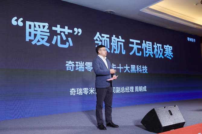 随后,奇瑞零米营销公司副总经理周朝成对奇瑞零米轻卡“暖芯版”产品价值独到之处进行了详细讲解:一是智能双供暖,快速制热,自动控温;二是增强低温续航,增加行驶距离约60公里;三是提升充电效率,缩短时间60分钟以上;四是20升油箱,严寒下持续供暖一周;五是前装开发,性能稳定可靠。