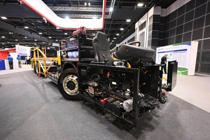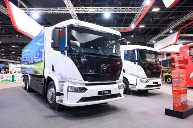 T9R作为比亚迪在海外首款搭载商用车专用刀片电池的重卡,首次亮相展会,该车续航可达320公里,在安全性、可靠性、动力性方面表现出色;适用于环卫、建筑运输和城市物流等应用场景,助力新加坡创造更清洁、更绿色的未来。