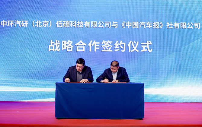 此外,为强化赋能中国汽车绿色低碳转型,中环汽研(北京)低碳科技有限公司与《中国汽车报》社还签署了战略合作框架协议,双方将充分整合和利用彼此在汽车大数据、汽车绿色低碳政策标准法规研究、融合传播等优势,联合媒体智库、卡车用户、汽车大数据研究及汽车行业资源,围绕重型车使用场景细分领域,聚焦市场产品运营数据发布、碳足迹核算、用户画像、卡友车辆选型等项目进行合作,进一步助力中国汽车产业绿色转型升级。