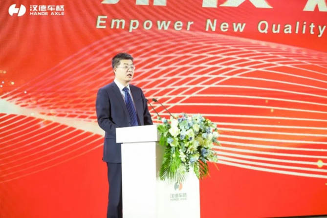陕重汽总经理支保京代表集团对汉德车桥取得的成绩表示高度肯定。他指出:汽车产业作为国民经济的支柱性产业,正迎来前所未有的发展机遇。在此背景下,陕汽集团积极响应国家号召,加大在新领域的投入力度,推动汽车产业向绿色化、智能化方向发展,陕汽将与汉德一道继续秉承开放合作的理念,加强与供应商的深度合作,共同肩负着推动汽车产业转型升级、实现高质量发展的历史使命,为圆满完成“十四五”发展任务、助力“2035战略”全面达成而奋斗!