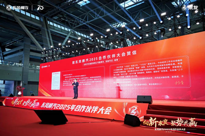 东风汽车集团有限公司董事长、党委书记杨青为大会发来贺信,祝贺东风柳汽 2025 年合作伙伴大会隆重召开,并表示2025年是“十四五”收官之年、“十五五”谋划之年,希望东风柳汽把握机遇,坚决落实东风公司赋予的使命任务,坚持商乘并举、双轮驱动,深入实施“龙行工程”,全力打赢“新能源化、智能化、国际化”攻坚战,为实现“三个跃迁、一个向新”贡献更大的力量。