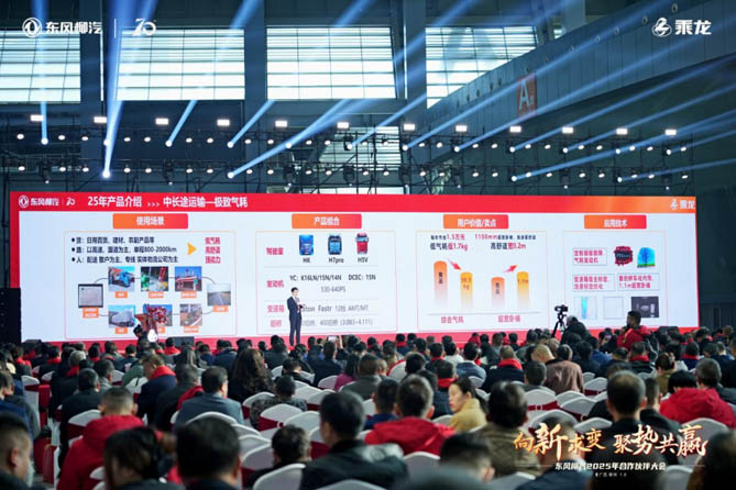 东风柳汽商用车销售公司总经理李仕谷在营销主题报告中指出,2025年乘龙品牌的营销战略要实现“新的客户阶层、新的竞争态势、新的行业格局、新的区域结构”四大转变: